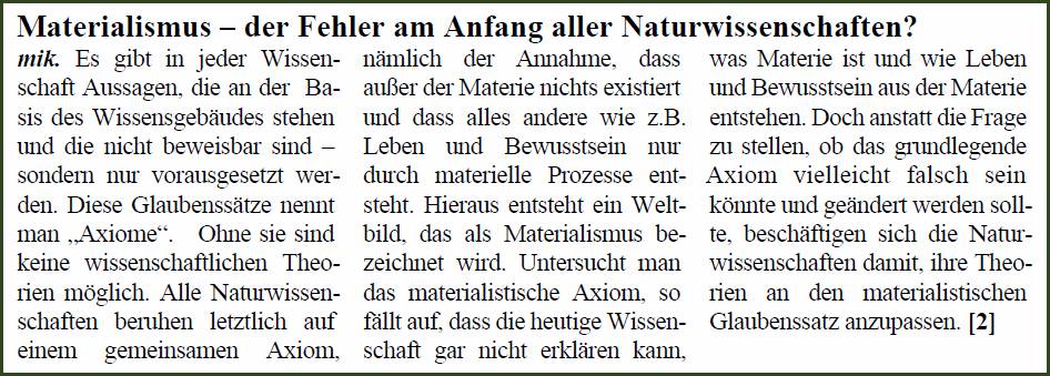 der materialistischen Sicht von der Beschaffenheit des Daseins nicht in Frage