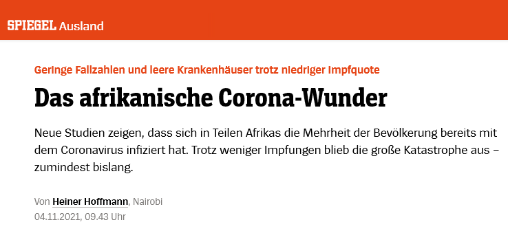 Es ist daher kein Zufall, dass Personen mit Vorerkrankungen, also Personen, die Medikamente schlucken, schwere Coronaverläufe haben. Indem die Gesundheitssysteme Afrikas nicht die hohen europäischen Standards aufweisen, kommt der Organismus seiner Bewohner mit Corona besser zurecht. Nachträgliche Einfügung: Es gibt einen weiteren gewichtigen Grund, warum es die Kenianer so gut getroffen haben: Doctors for COVID Ethics Der Umstand, dass Afrikas Bevölkerung mehr der Einwirkung der Sonne ausgesetzt ist als die Bevölkerung Europas, könnte ein weiterer Faktor sein, der am Zustandekommen dieses afrikanischen Coronawunders beteiligt ist. Vitamin D und Corona |