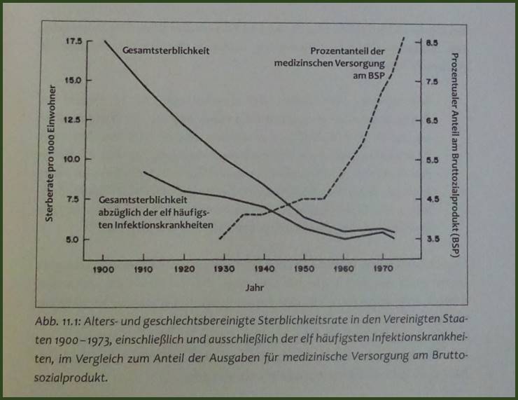 Rückgang auf diese Maßnahmen zurückzuführen ist, ... wird geschätzt, dass höchstens 3,5 Prozent des gesamten Rückgangs der Sterbefälle seit 1900 auf die medizinischen