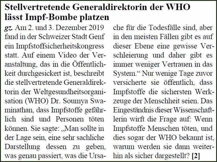 einer „gewissen Verschleierung“ spricht denn auch die WHO-Sprecherin Dr. Soumya Swaminathan. Zum Beginn des Abschnittes Bei all dem ist in Betracht zu ziehen, dass man in der Medizin keine Ahnung davon hat, wie es durch Aluminiumadjuvanzien zur Immunantwort kommt. Aus Arznei-Telegramm®: »Wie aluminiumhaltige Adjuvanzien die Immunantwort potenzieren, ist bis heute unklar«. (Potenzierung der Immunantwort dürfte wohl ein falsches Konzept sein …) Von Impfwissenschaftlern ist daher nicht zu erwarten, dass sie imstande sind, sich vorzustellen, dass körperliche Strukturen durch Impfungen, bei welchen Aluminium eingesetzt wird, ebenfalls zu einem Angriffsziel des Immunsystems werden. |