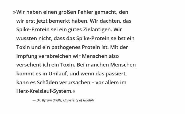 Mit der Redewendung Wasch' mich, aber mach mich nicht nass wird zum Ausdruck gebracht, dass in manchen Fällen ein Nutzen ohne Nachteil nicht zu haben ist. Das gilt für viele Dinge des Daseins. Impfungen gehören auf jeden Fall dazu. Damit Impfungen funktionieren, ist es erforderlich, dass der Organismus die genaue Kenntnis von der Beschaffenheit des biologischen Störenfrieds (Krankheitserregers) besitzt. (Um einen Täter fangen zu können, braucht die Polizei seine Physiognomie) Um dem Organismus diese Kenntnis zu verschaffen, ohne hierbei den Impfling dem Risiko zu erkranken auszusetzen, enthalten Impfstoffe inaktivierte, also keine Krankheit verursachenden Exemplare des Krankheitserregers. Mit solchen zu Attrappen degradierten Krankheitserregern allein ist ein Immunsystem jedoch nicht dazu zu bringen, Antikörper herzustellen. Aus diesem Grund enthalten Impfstoffe auch immer giftige Zusatzstoffe (Aluminiumhydroxid zum Beispiel). Erst die Anwesenheit eines solchen giftigen Zusatzstoffes bringt das Immunsystem dazu, Antikörper herzustellen. Die Ursache, warum Impfstoffe, die ein solches Toxin enthalten, im Gerede sind, nicht ohne Nebenwirkungen zu sein, ist Folgende: Weil das autonome Nervensystem nicht in der Lage ist, den Emittenten des Toxins (die Impfspritze) zu identifizieren, sieht es sich außerstande, einen zielgerichteten Angriff zu führen und greift halt irgendetwas an. Es ist daher nicht überraschend, wenn körpereigenes Gewebe durch Impfungen dieser Art zu einem permanenten Angriffsziel des Immunsystems wird Æ Aus dem Inhalt des Papiers … Æ Der kriminelle Gehalt des Studien-Designs für Impfstoff-Prüfungen Bekanntermaßen hat bei den Corona-mRNA-Impfstoffen das Spike-Protein die Rolle des Impfantigens inne (jene Sache, dessen Zweck es ist, die Aufmerksamkeit des Immunsystems auf sich zu ziehen). Dieses Spike-Protein wird nicht durch die Impfung in den Körper gebracht, sondern durch Emission der Körperzellen des Impflings auf Veranlassung des verimpften mRNA-Codes. Im Zuge der Corona-Impfkampagne hat sich jedoch herausgestellt, dass das Spike-Protein alles andere als ein harmloses Zielantigen ist. Der Umstand, dass es notwendig geworden ist, Spezialisten für Impfschäden zu haben und der Umstand, dass Übersterblichkeiten mit Impfungen korrelieren, zeigen, dass die Corona-Impfung alles andere als ungefährlich ist. Æ Impfgeschädigte Soldaten verklagen die kanadischen Streitkräfte auf eine halbe Milliarde Dollar Es ist daher erstaunlich, dass Behörden und System-Medien so tun, als würde die Corona-Impfung unschädlich sein und es somit richtig gewesen, die Bevölkerung der Impfung zu unterziehen. Eigentlich ist das nicht erstaunlich, sondern skandalös. ***** Nicht jeder Sachverhalt, dem von der Propaganda die Eigenschaft Erfolgsgeschichte zugewiesen wird, ist eine Erfolgsgeschichte. Die Pockenimpfung ist keine Erfolgsgeschichte. Inhaber